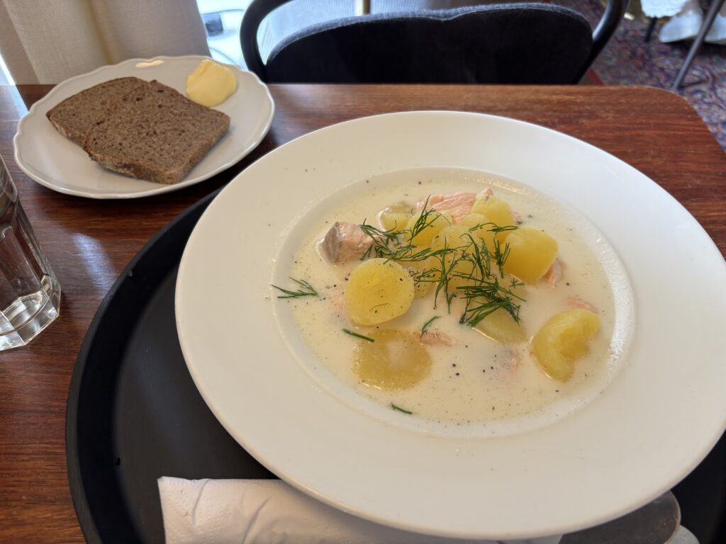 ここではフィンランド料理でもある「サーモンスープ」も食べることができます。