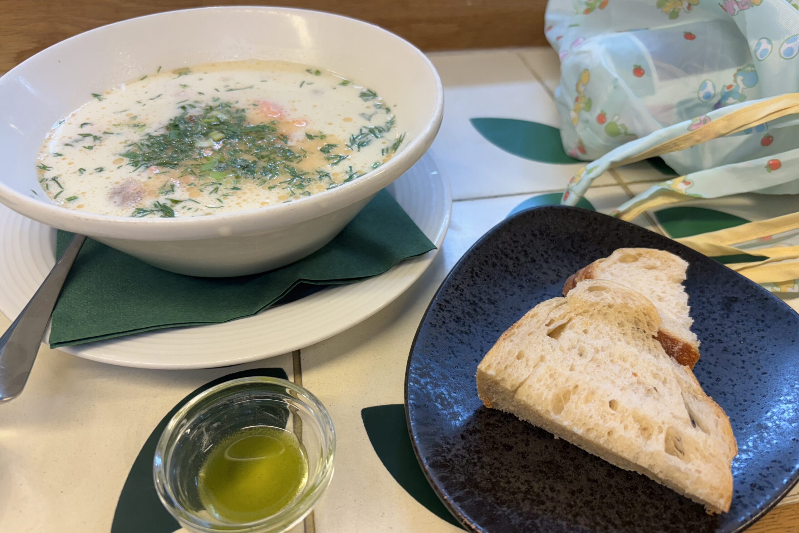 1日目に食べたカフェエンゲルのサーモンスープと比べると、こちらの方が濃厚な印象でした。お店によって少しずつ味の特徴に差があるのは面白いですね。