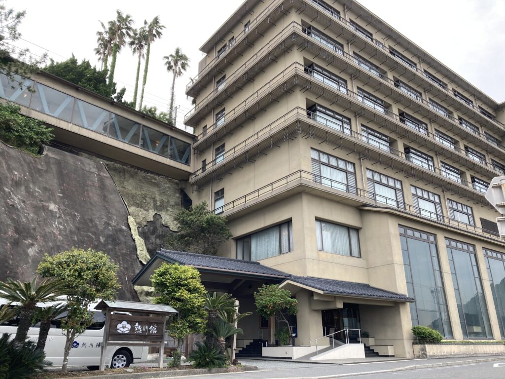 伊豆稲取駅の南側に位置する「熱川館」。海のすぐそばにある温泉宿です。