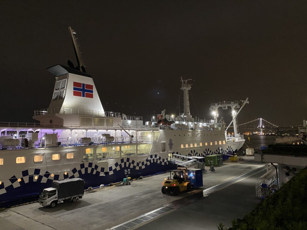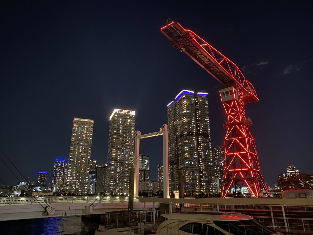 また、竹芝ターミナルからは夜になると伊豆諸島行きのフェリーが出港しています。フェリーの時間に合わせて行き夜の船出を見ると、ちょっとした非日常感が味わえます